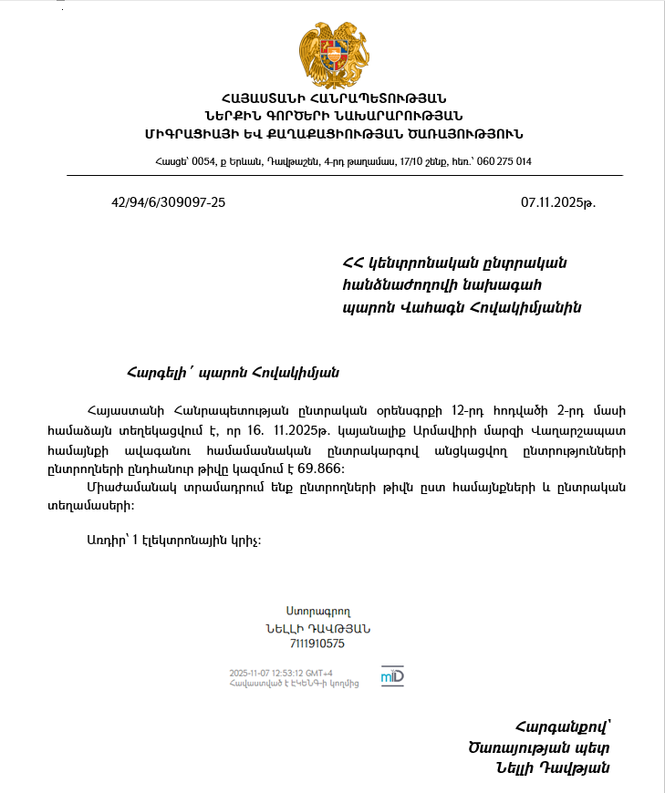 | Ընտրողների ցուցակներում ընդգրկված ընտրողների ընդհանուր թիվը |